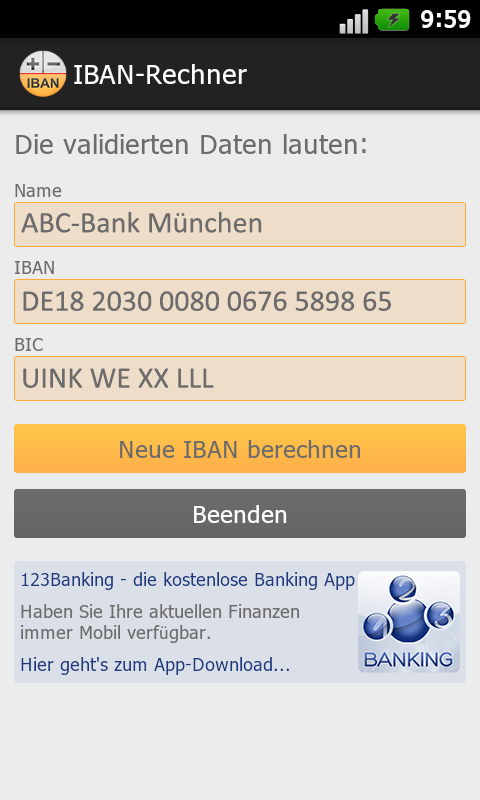 Schon wird ihre iban berechnet.